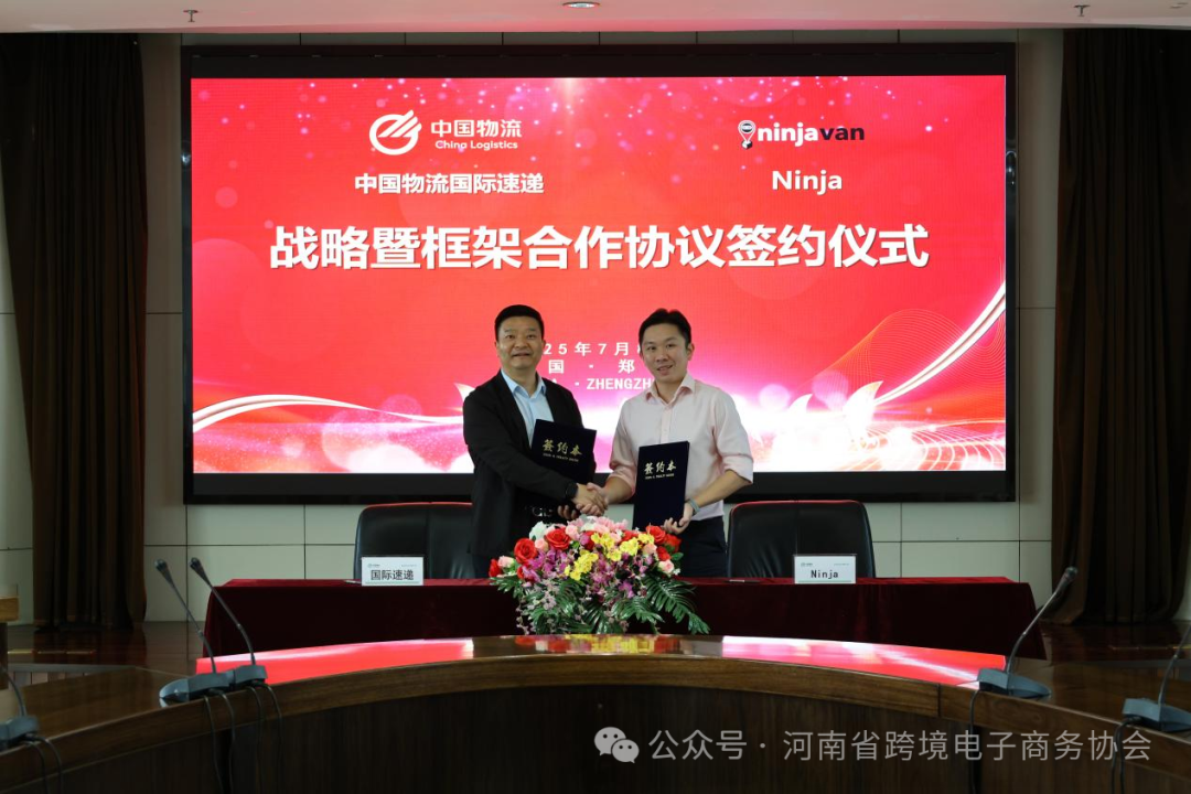 2025年7月8日,中国物流国际速递与Ninja在郑州签署战略暨框架合作协议。公司副总经理刘云峰与Ninja联合创始人冯星阳就进一步深化合作展开业务交流,会后双方代表签订战略合作协议。