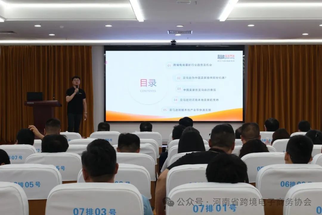 活动由河南省跨境电子商务协会品宣部负责人刘境岚主持,开场环节中,河南省商务厅二级巡视员孙琪、南阳市商务局贸促会会长姚士丽、南阳医学高等专科学校副校长刘荣志、河南省国际贸易网商协会秘书长马克先后从省级战略、地方布局、产教融合、协会协同维度致辞,锚定南阳产业带跨境发展方向。致辞后,刘境岚围绕“协会助力企业转型出海”展开宣讲,介绍协会在资源整合、能力赋能等方面的服务体系,为企业明晰跨境破局路径。