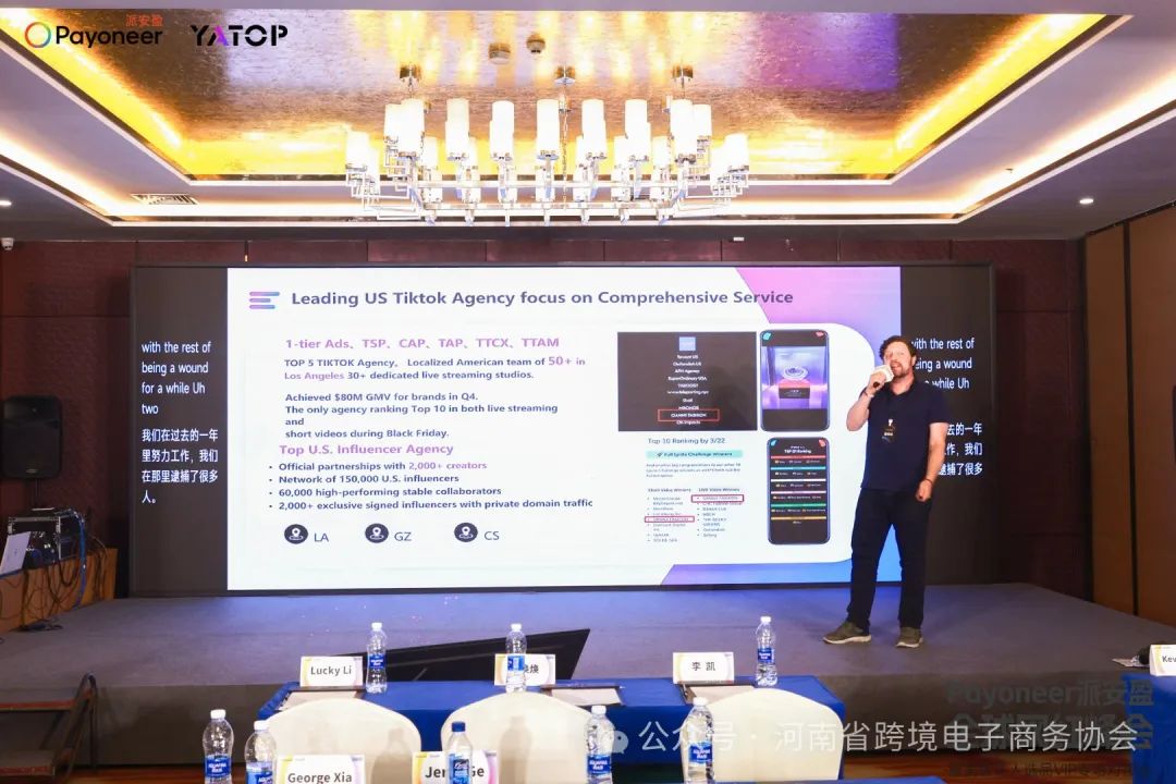 特邀“美区”达人、TikTok Shop跨境电商千万粉丝网红达人Clinton Cargile先生登台分享。他凭借自身丰富的实战经验,深入剖析了如何把握TikTok Shop的商机,通过短视频与直播这一新兴渠道,实现产品的爆款打造和销售增长。Clinton Cargile先生的分享生动形象,案例鲜活,让现场观众对TikTok Shop的运营有了更深入的理解和更清晰的方向,也为河南跨境电商从业者在社交媒体营销领域提供了宝贵的借鉴。