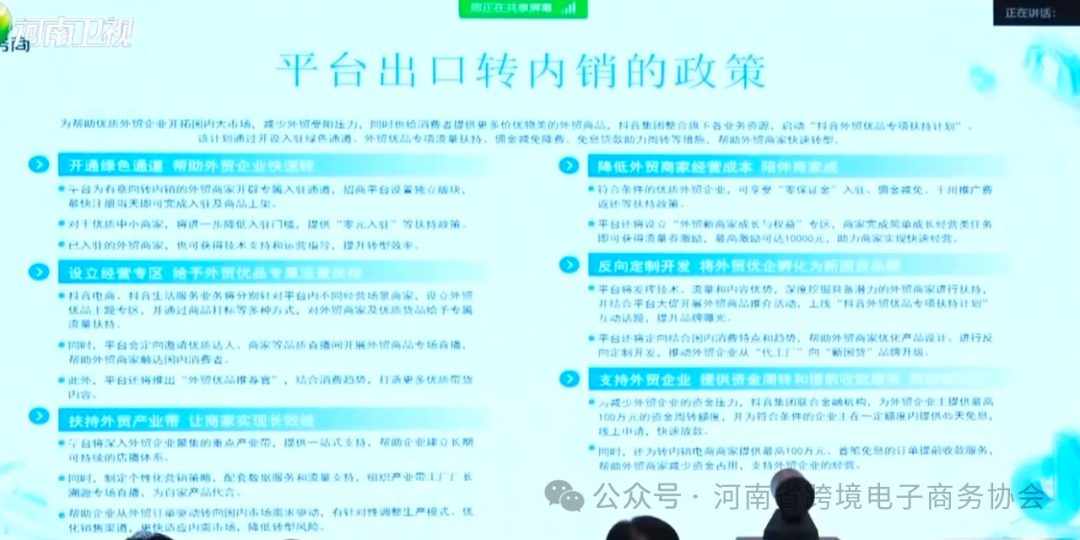 活动期间,淘宝、京东、抖音、阿里巴巴1688、敦煌网、苏宁易购等国内知名电商平台负责人依次介绍各自平台为河南外贸企业量身定制的帮扶措施。各平台从流量扶持、运营指导、物流优化等多个维度,提出了切实可行的解决方案,助力河南外贸优品开拓市场。